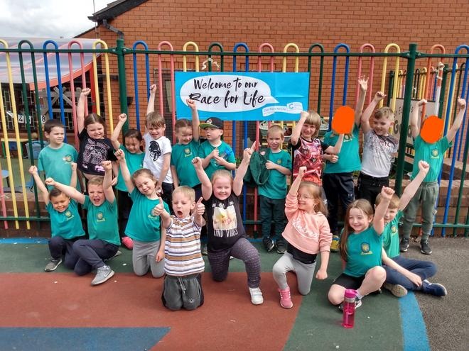 Our class ran a mile to raise money for Cancer Research UK. Our school raised over £1000 in total!!!